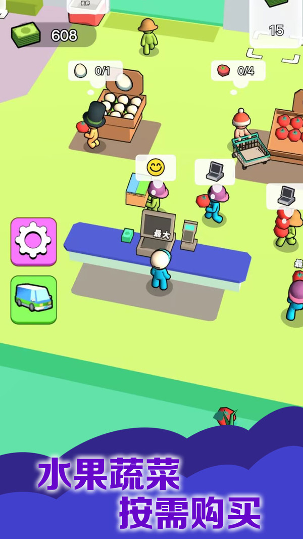 2、在商店中购买材料、在地图上探索获得材料、完成顾客订单获得材料等;