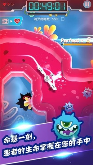 1、纳米机器人会持续自转,玩家只能控制纳米机器人的前进速度,避免触碰到任何人体组织;