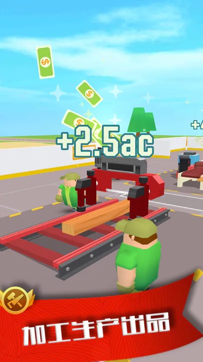 3、经典的卡通画风,简单的操控方式,只需要点击手指即可经营自己的伐木工厂。