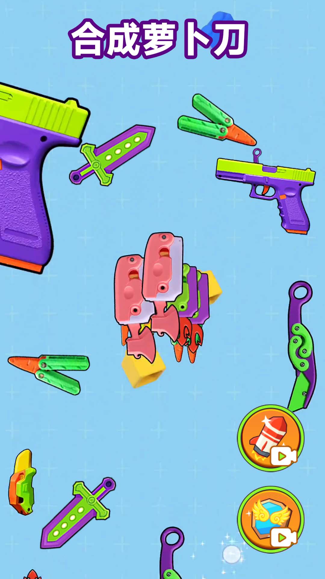 2、游戏中碎片的组合有多种方式,萝卜刀可以被组合成不同的形状,更加自由和灵活;