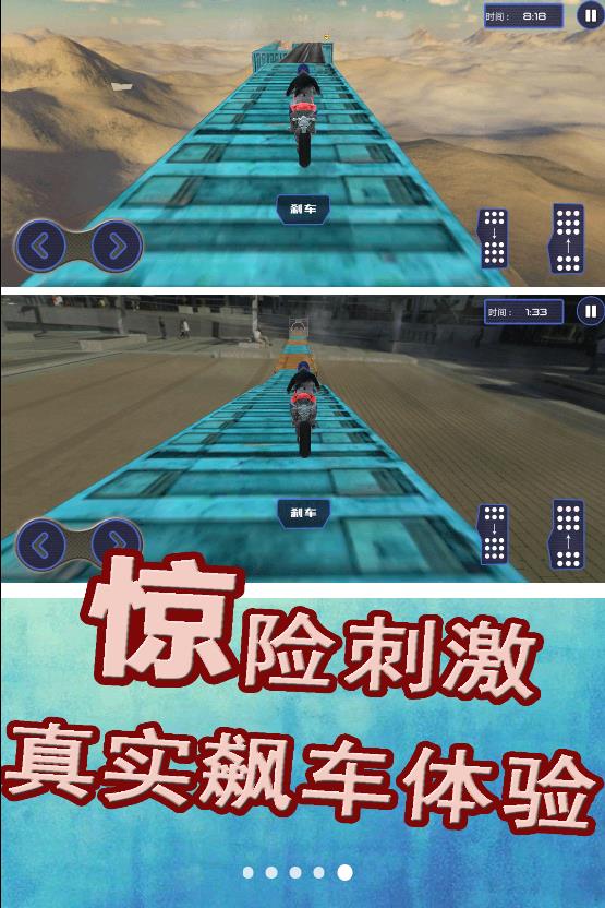 2、设有各种特技挑战和任务,例如飞跃长距离、穿越狭窄的峡谷等等,能够展现出高超的驾驶技巧和勇气;