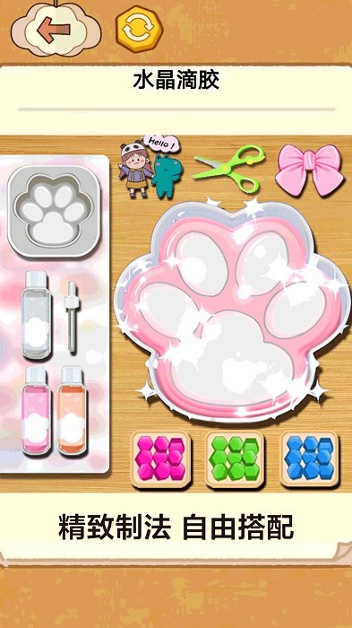 3、融入了很多治愈元素,比如可爱的胶模、各种颜色的胶水,体验轻松。