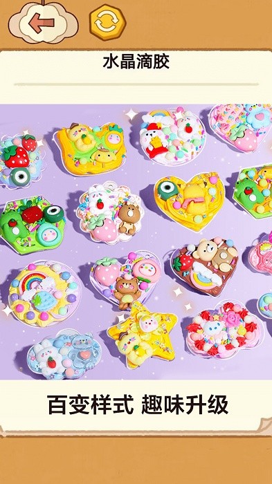 1、玩家可以根据自己的创意设计出属于自己独特的水晶胶作品,并添加自己的创意元素。