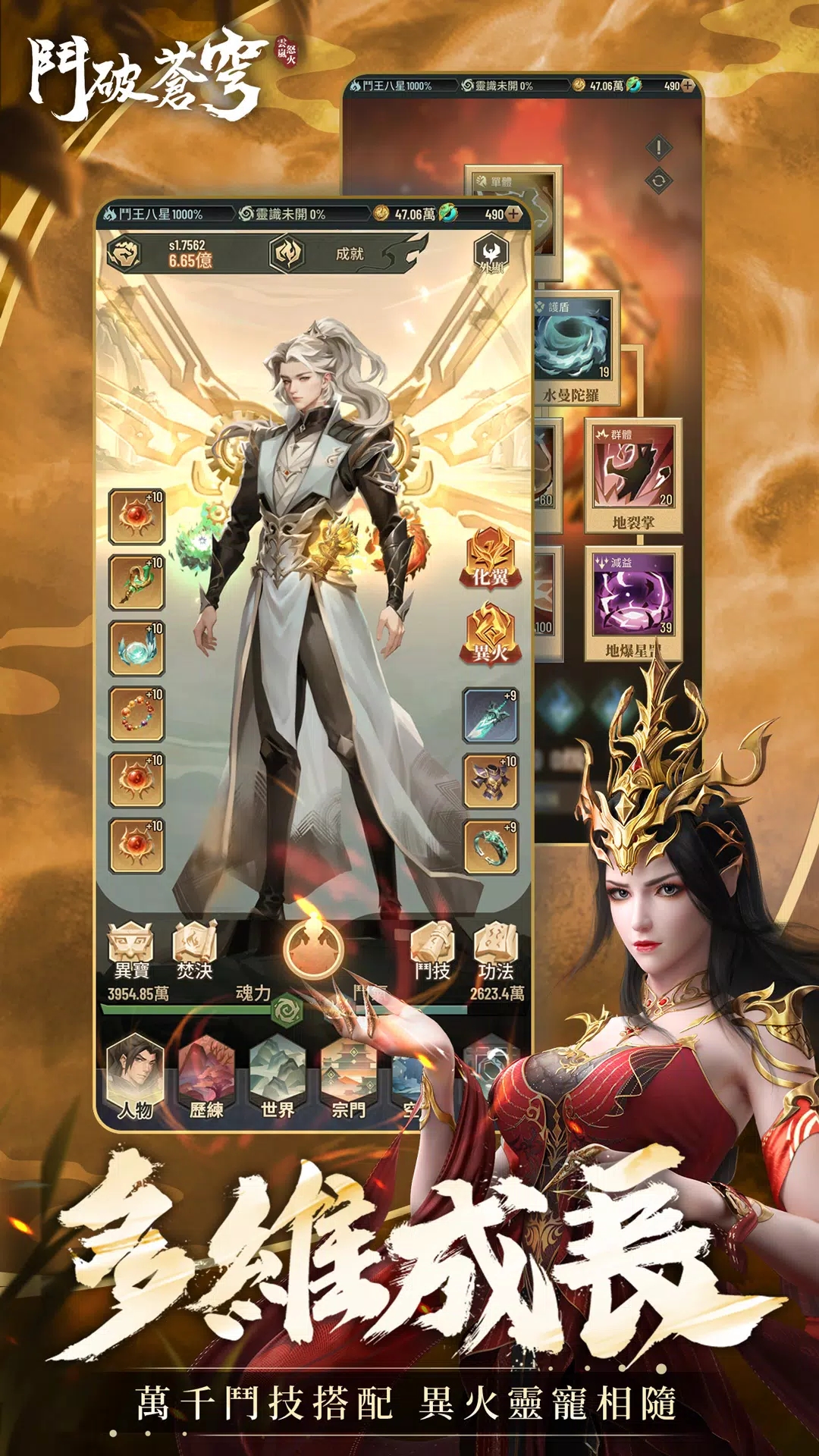 焚诀、装备两大成长成体,千种斗技搭配,更有异火、魔宠、伙伴助力。无论单打独斗还是多人混战,找到适合的搭配,畅快战斗吧。