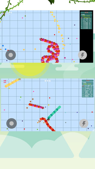 2、除了吃食物来增长长度,玩家还可以利用各种道具和技能来攻击对手,如加速、减速、发射射线等;