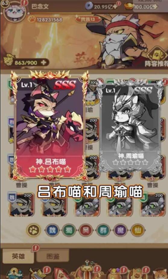 2、游戏采用了可爱的猫咪形象,将三国时期的英雄、名将、美女等角色进行重新设计