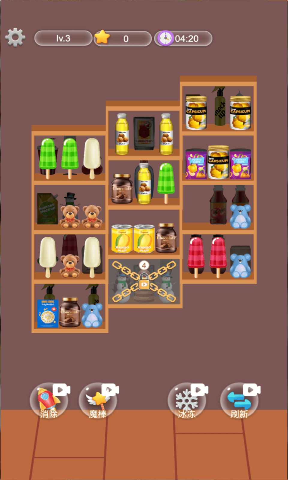 3、关卡设置非常挑战性,合理规划物品的摆放位置,才能将所有物品全部收纳进货柜中。