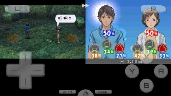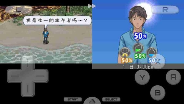 1、行走时,上屏不单单显示体力、满腹度和水分,主角的半身像也同时显现出来。