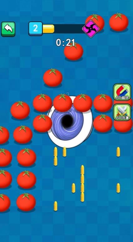 2、为了在竞争中占据主动,你需要滑动屏幕将你控制的黑洞移动到可以吞噬的物体上。