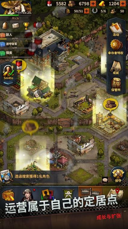 2、你可以通过完成任务、战斗和交换来收集生存物品、武器和补给品,不断升级自己的幸存者队伍;