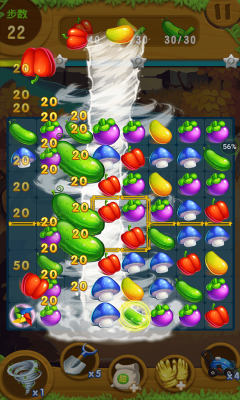 3、在游戏中,它们必须结合相同的水果或蔬菜,可以通过将它们移动到一起来消除。