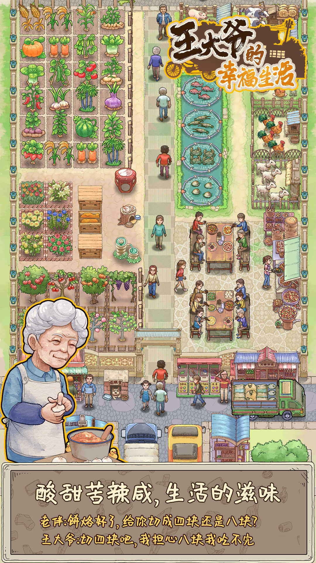 王大爷的幸福生活无限钞票钻石一款休闲欢快的模拟经营类型的游戏,在游戏中玩家将会扮演游戏主角王大爷,经营自己的庄园,种植农作物,照顾动物,打造理想的农场,与村民互动,建立友谊,帮助他们解决问题,共同创造幸福的社区,进行冒险,探索,完成各种任务,体验休闲愉悦的生活。