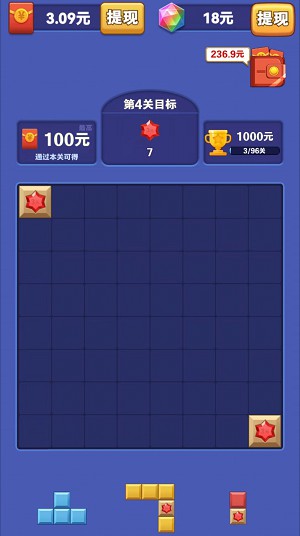玩家在可以通过过关和消除方块来获得丰厚的奖励,真正实现玩游戏赚钱的梦想。