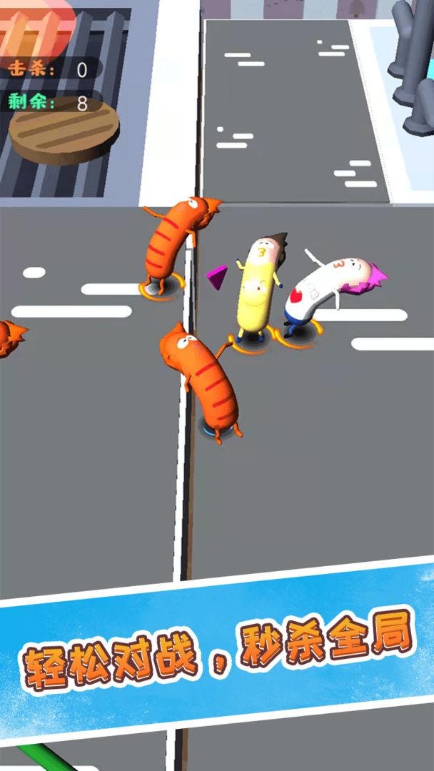 随时随地加入挑战看看谁是最强大的香肠人,杀死你的对手只需点击一下就行。