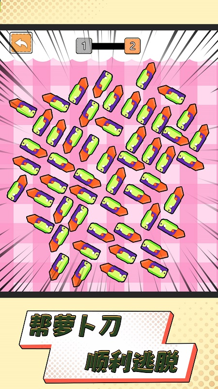 1、您需要发挥自己的创造力,找到独特的解决方案,帮助萝卜刀成功逃脱;