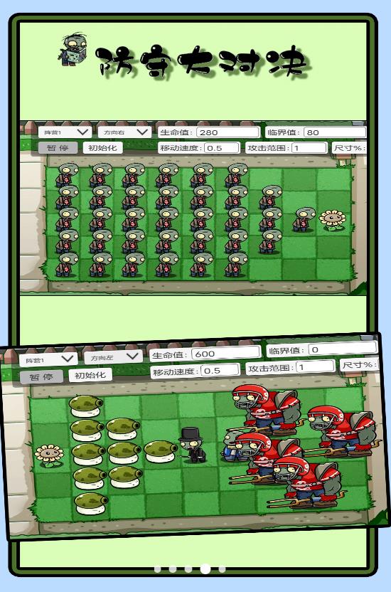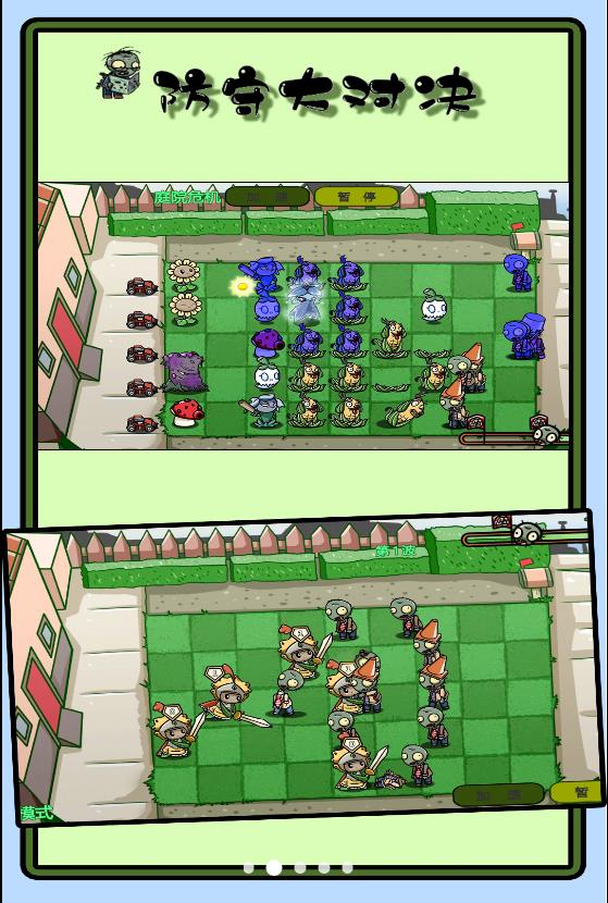 防守大对决是一款很好玩的塔防游戏,游戏内的玩法很多都是相当简单的,玩家需要在游戏内放置各种植物来击退僵尸,这里的僵尸类型很多,都是有着不同的特点的,玩家需要仔细的观察僵尸的攻击方式来放置防御植物,高清的游戏画面带来很好的体验赶紧来试试吧。