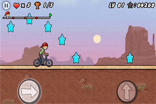 单车男孩是一款非常好玩的手机趣味自行车跳跃闯关游戏,在这款游戏中玩家们能够体验到好玩的跳跃闯关玩法,游戏采用的是平面的2D游戏画面,在这里你要控制你的角色利用自行车来进行跳跃闯关,丰富的地图设计,多样的趣味关卡,还有更多的游戏提升道具等你来体验。
