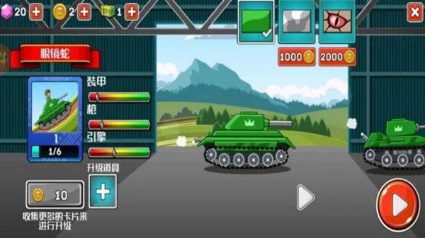 1、通过升级坦克和购买装备来提升坦克的性能和攻击力,也可以定制坦克的外观和喷漆;