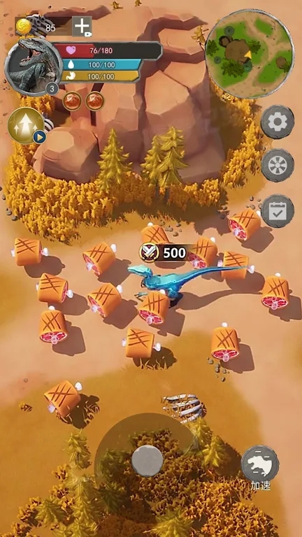 2、玩家可以选择不同种类的恐龙扮演,从而体验不同的游戏体验;