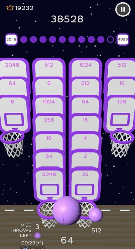 2、通过合并篮球号码,不断获得更多的游戏积分。
