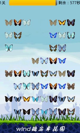 1、在规定的时间内找到两只相同的蝴蝶来消除它们。