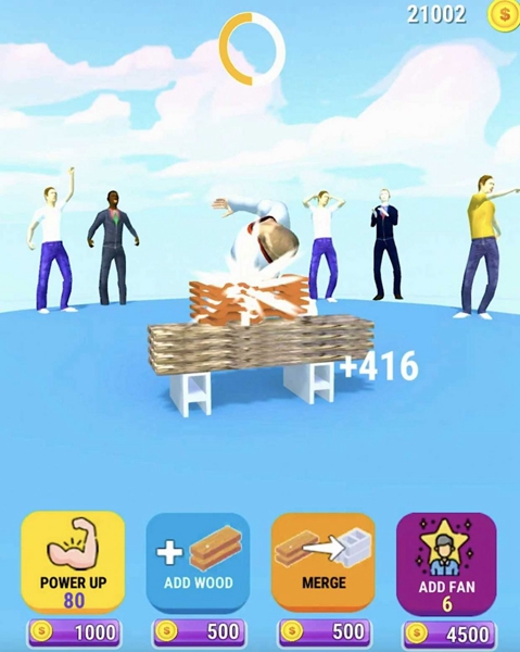 2、玩家扮演跆拳道高手,用踢腿和拳打碎砖块。