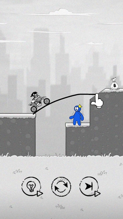 3、游戏中,玩家需要画线组成桥梁,帮助火柴人过桥。