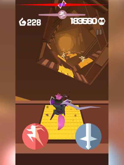 控制一把飞刀,通过滑动屏幕来控制飞刀的移动和跳跃。