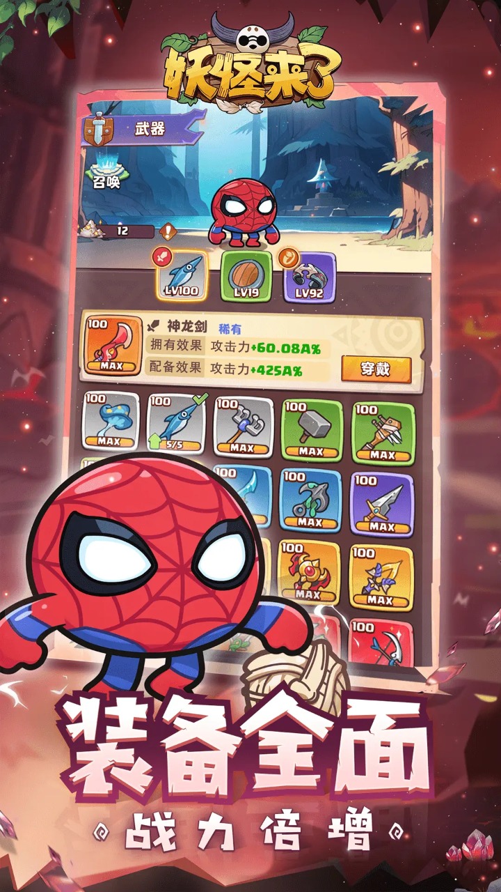 1、妖怪来了小游戏是一款以收集、强化和升级不同类型妖怪作为主要游戏内容的RPG类游戏