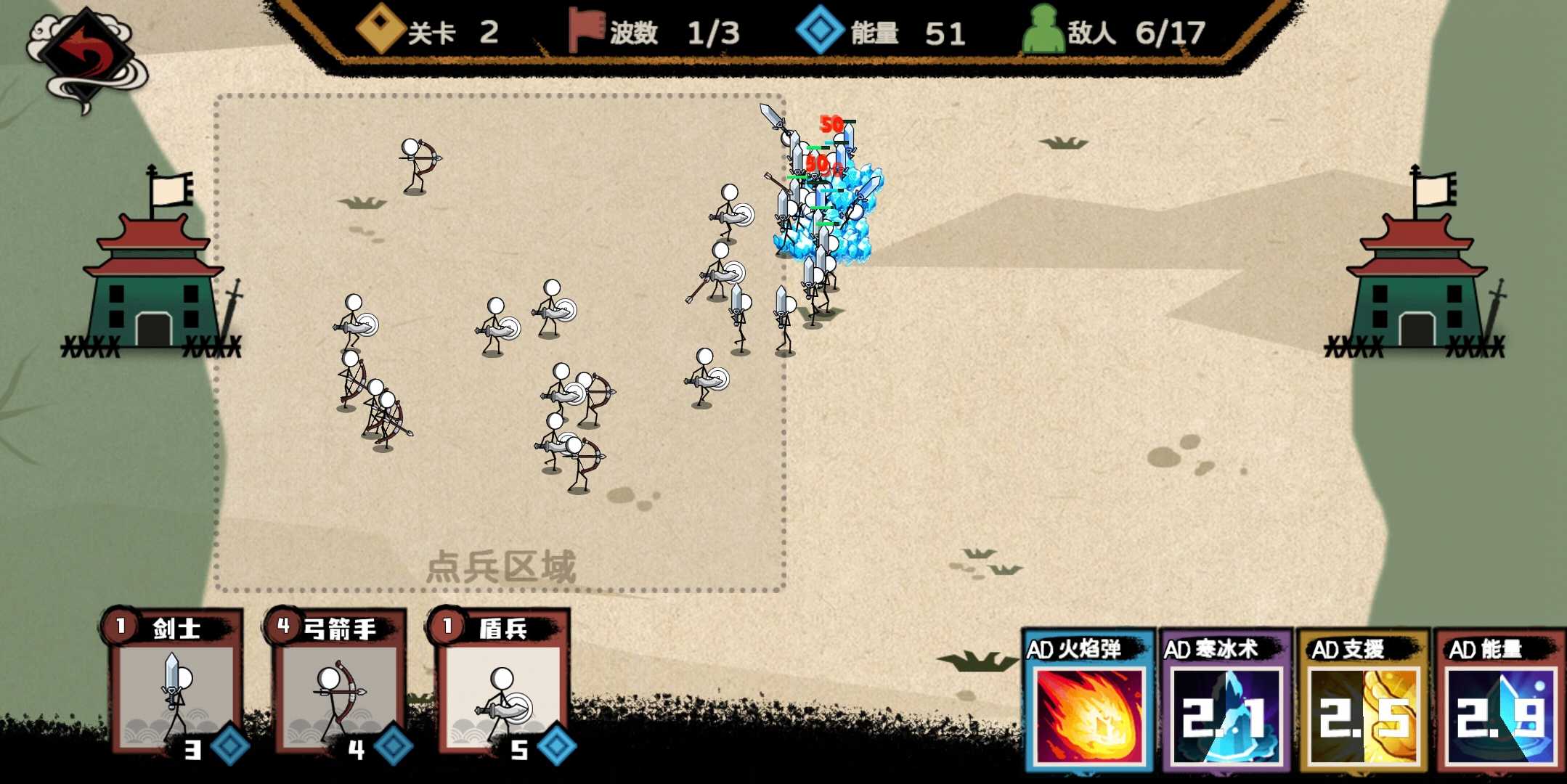 3、只有精明的策略才能带领火柴人军队获得胜利。