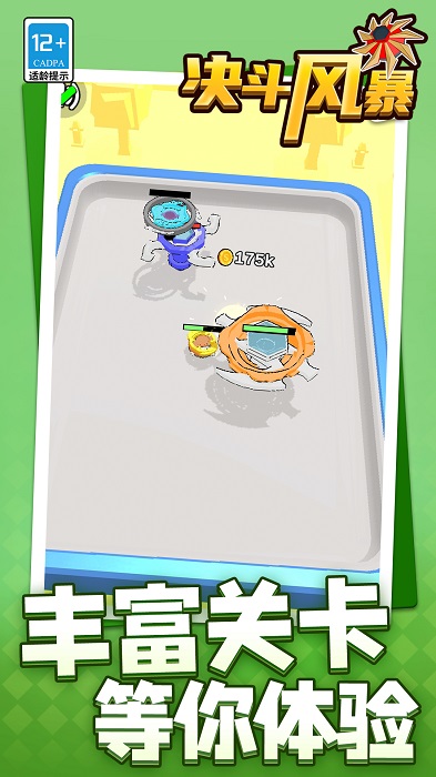 1、游戏采用精致的卡通风格,各种陀螺、场景和角色都呈现出可爱的卡通形象;