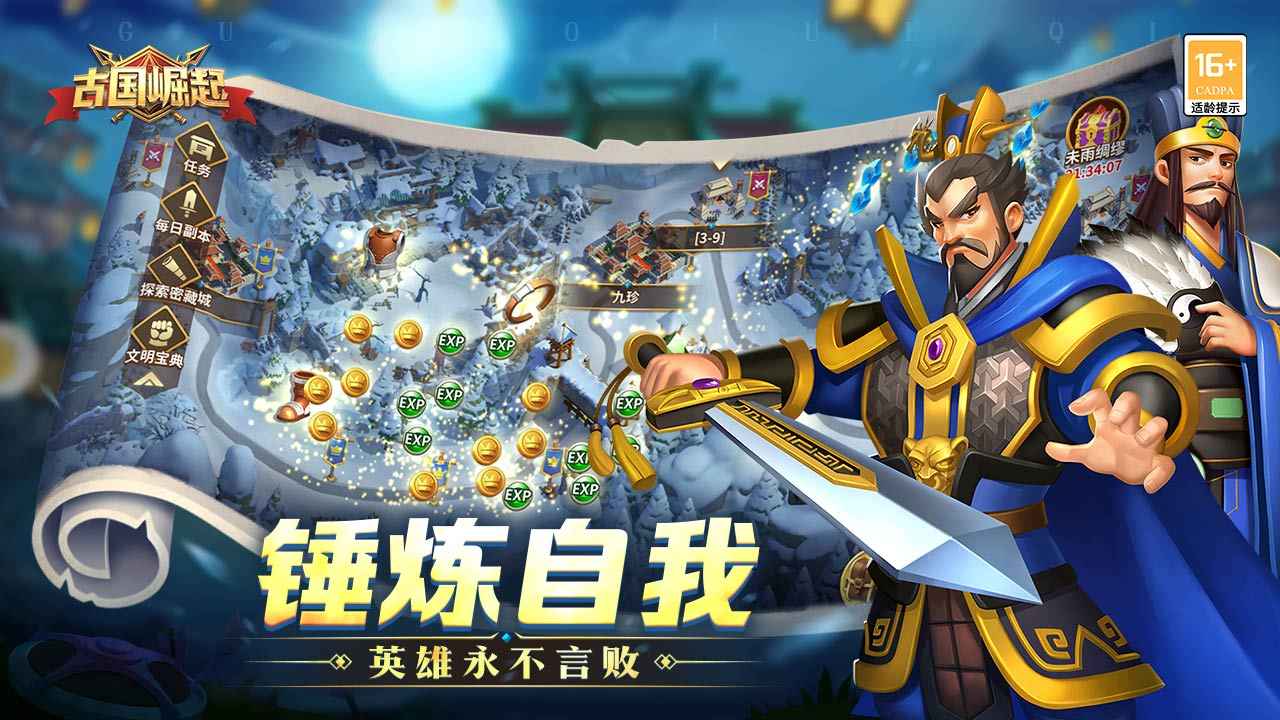 古国崛起是一款以古国文明崛起为题材的策略战争类型的游戏,在游戏中将玩家带回到古代的文明时代,扮演一位领袖,玩家可以通过征战和任务获得各种战斗装备和技能,招募英雄并组建强大的军队,通过经营和战争,逐步扩大自己的领土和势力范围,最终成为一国之主的传奇光辉历史。