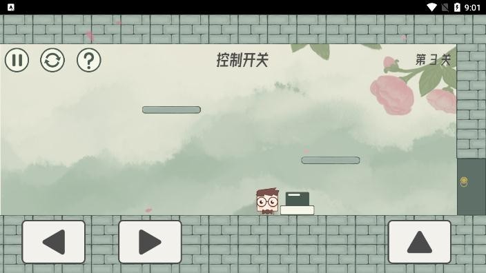 1、操作方法:游戏中操作非常简单,只需通过方向键就可以让眼镜先生进行各种动作,包括跳、走、攻击等等。点击屏幕让眼镜先生进行相应的操作即可。