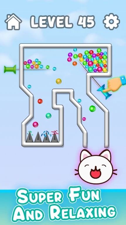 只拖动防止小球掉下来的阀门,让小球全部落入瓶管,然后解锁下一关。