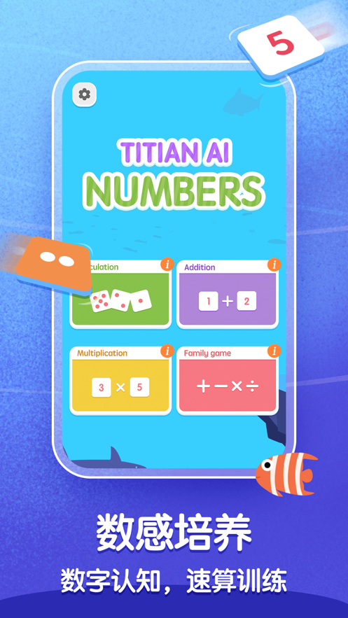 游戏内容包括数和量的对应,数字认知,加减法速算,乘法速算,亲子对战,策略决策等内容。