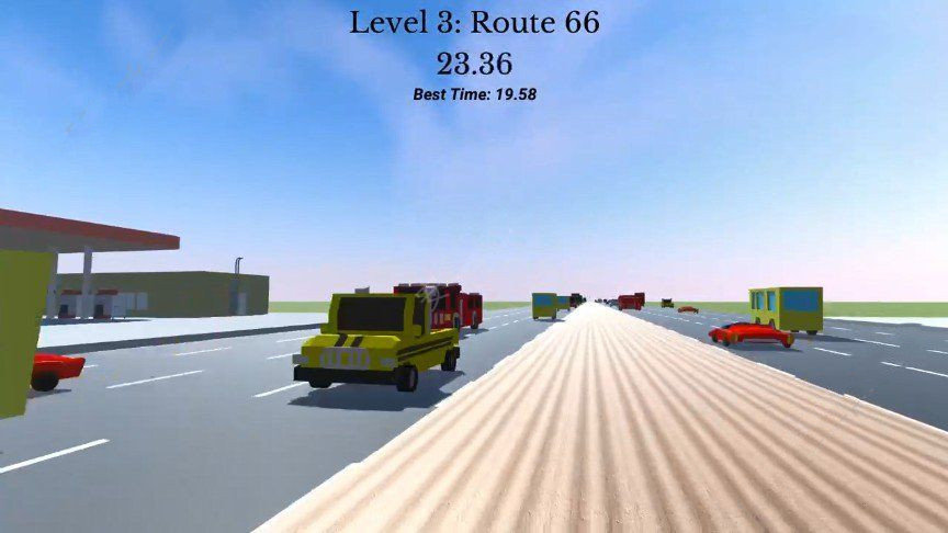 1、非常简单的像素风格,马路上的车络绎不绝,车辆之间的间隔也比较短。