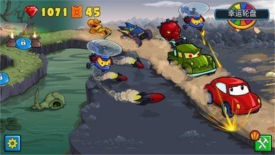 终极狂野飞车是一款非常好玩的手机趣味赛车闯关游戏,这款游戏的玩法非常的趣味,游戏采用卡通的平面2D游戏画面设计,在这里你要驾驶你的赛车在关卡中躲避各种武器的攻击,顺利的闯关成功,非常的好玩有趣,在这里你能够体验到最好玩的射击游戏体验,赶快下载感受吧。