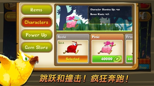 疯狂几维鸟是一款非常好玩的手机趣味跳跃闯关游戏,这款游戏的主角是各种可爱的小鸟,在这里你要控制各种不同种类的雏鸟在这里进行跳跃闯关挑战,这款游戏因为雏鸟还不会飞行只能够在关卡中进行跳跃,在这里你能够通过获取金币的方式在积攒你的怒气,释放各种强大的跑酷技能,更多的游戏乐趣等你体验。