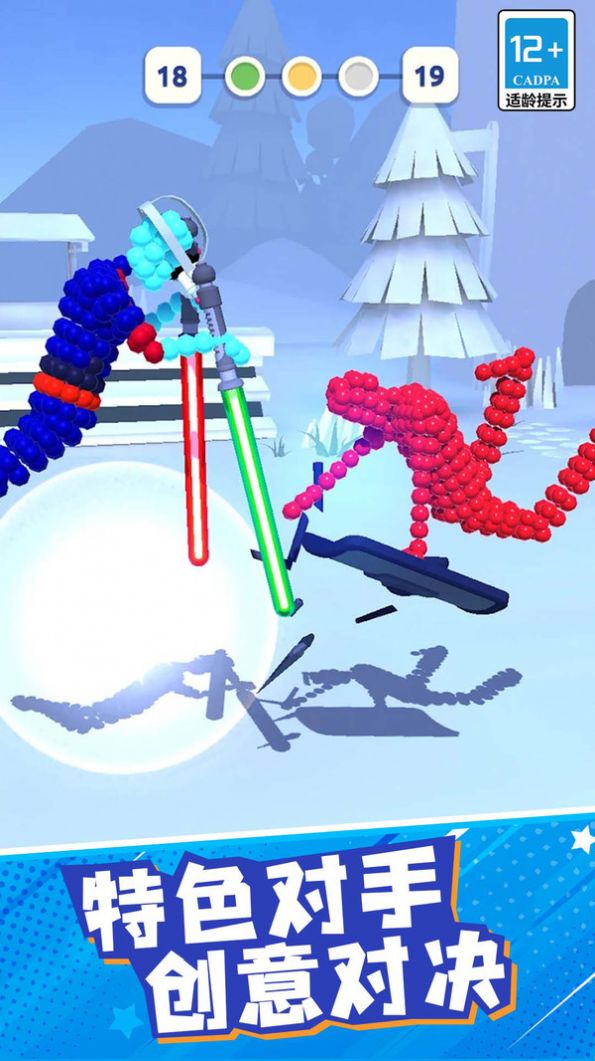 1、糖果怪物游戏是一款火柴人竞技动作游戏,通过合成糖果来组建强大的火柴人