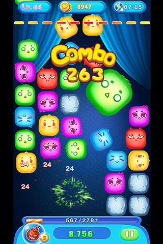 2、游戏中以各种可爱的豆豆为主题,通过连连消除的方式来进行游戏。