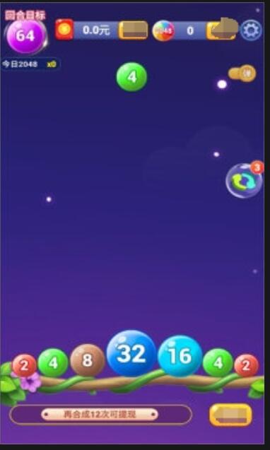 1、通过点击屏幕滑动和发射数字方块,合成2048红包版当两个相同的数字方块碰撞后合并;