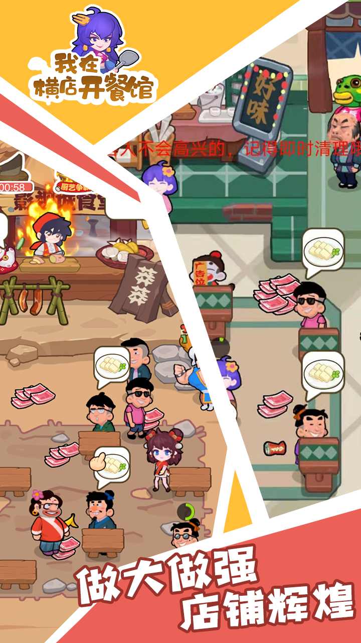 我在横店开餐馆是一款具有趣味性的休闲模拟经营类型的游戏,在游戏中玩家将会扮演餐厅的经营者,在游戏中体验餐厅经营的各个环节,责管理餐厅的日常运营,包括员工管理、食材采购、菜品研发和服务质量,根据市场需求和顾客口味来调整菜品的配方和烹饪方式,创造出独特美味的菜肴吸引更多的顾客,享受经营的乐趣。