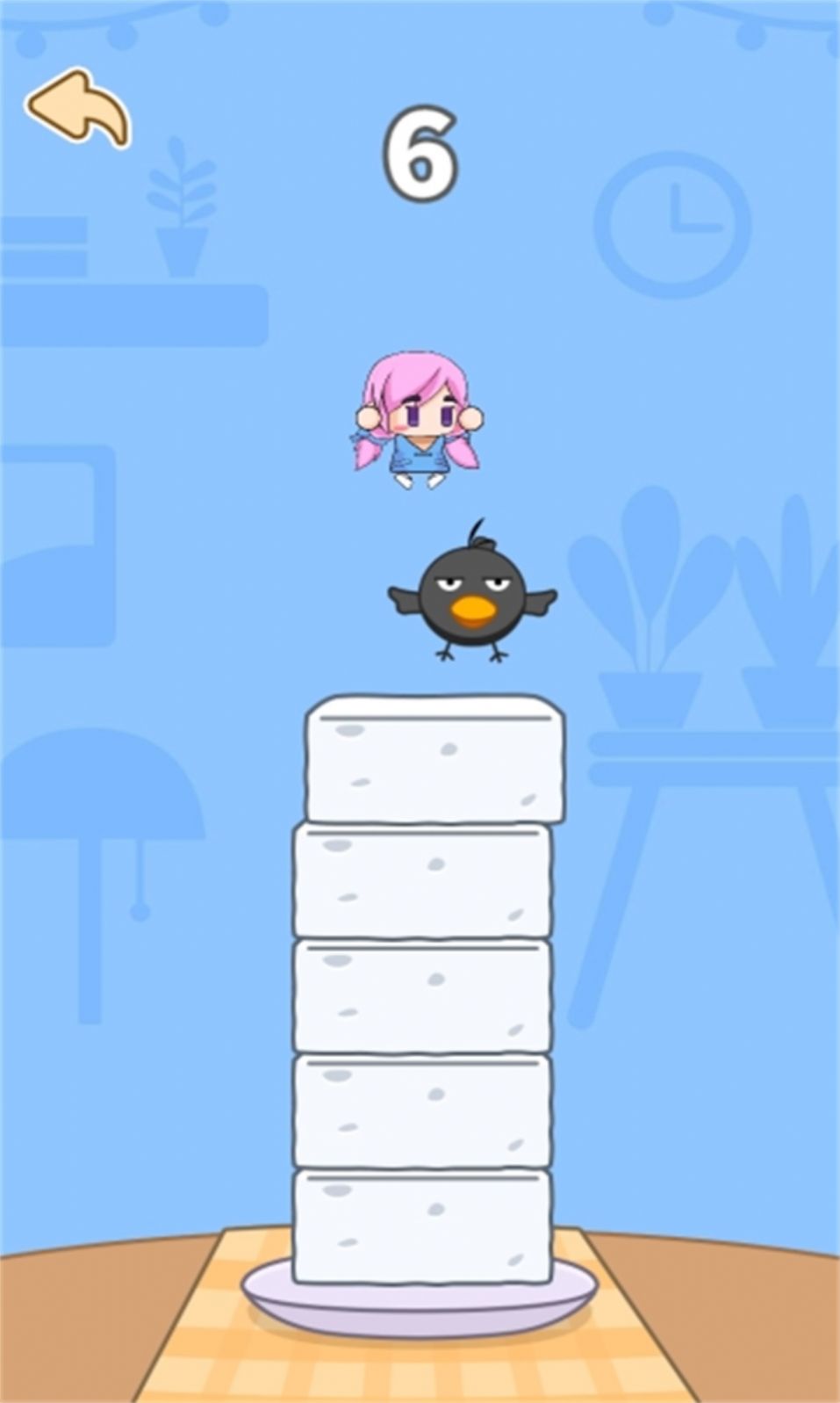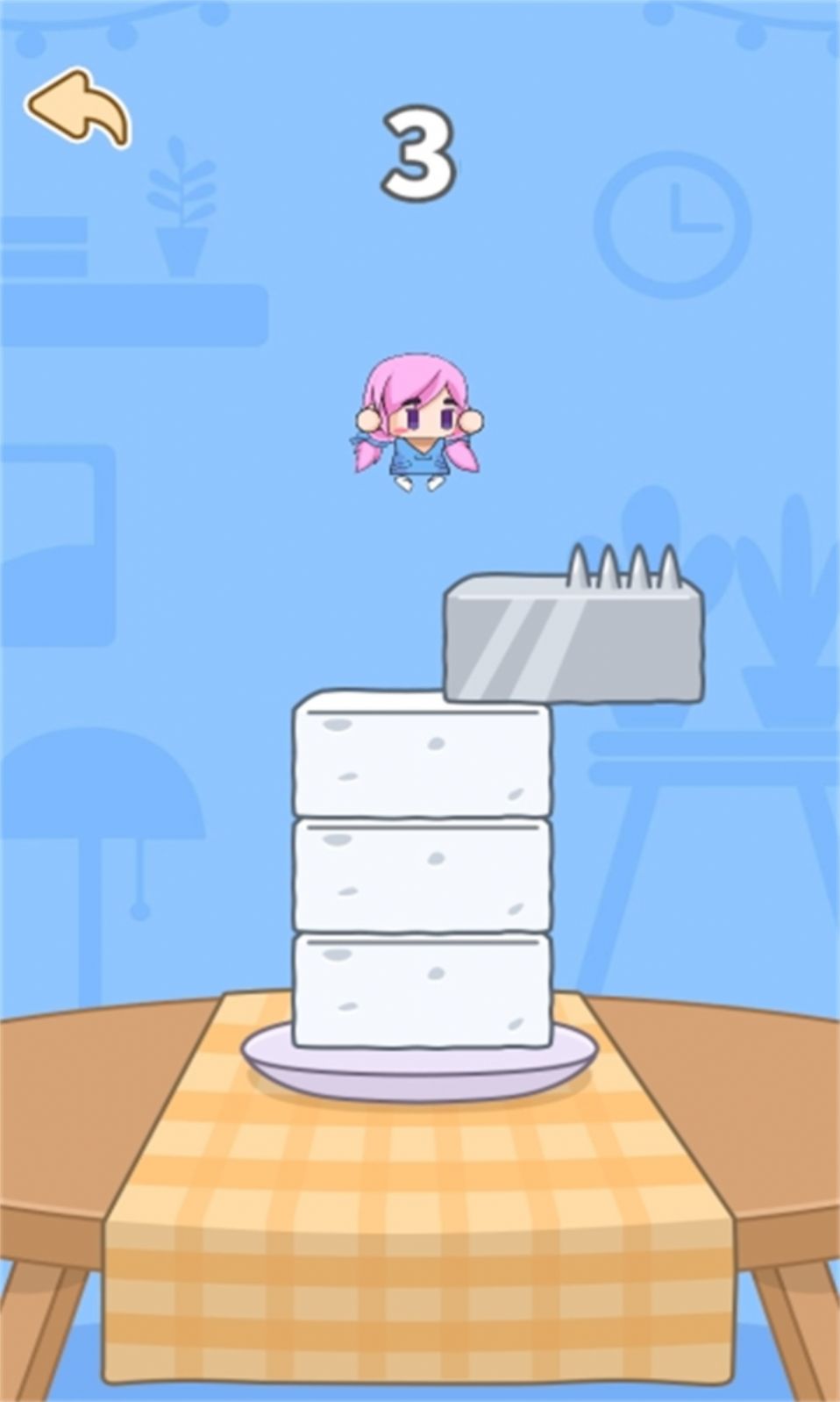 1、玩家需要控制可爱的小萝莉在一块块豆腐上跳跃