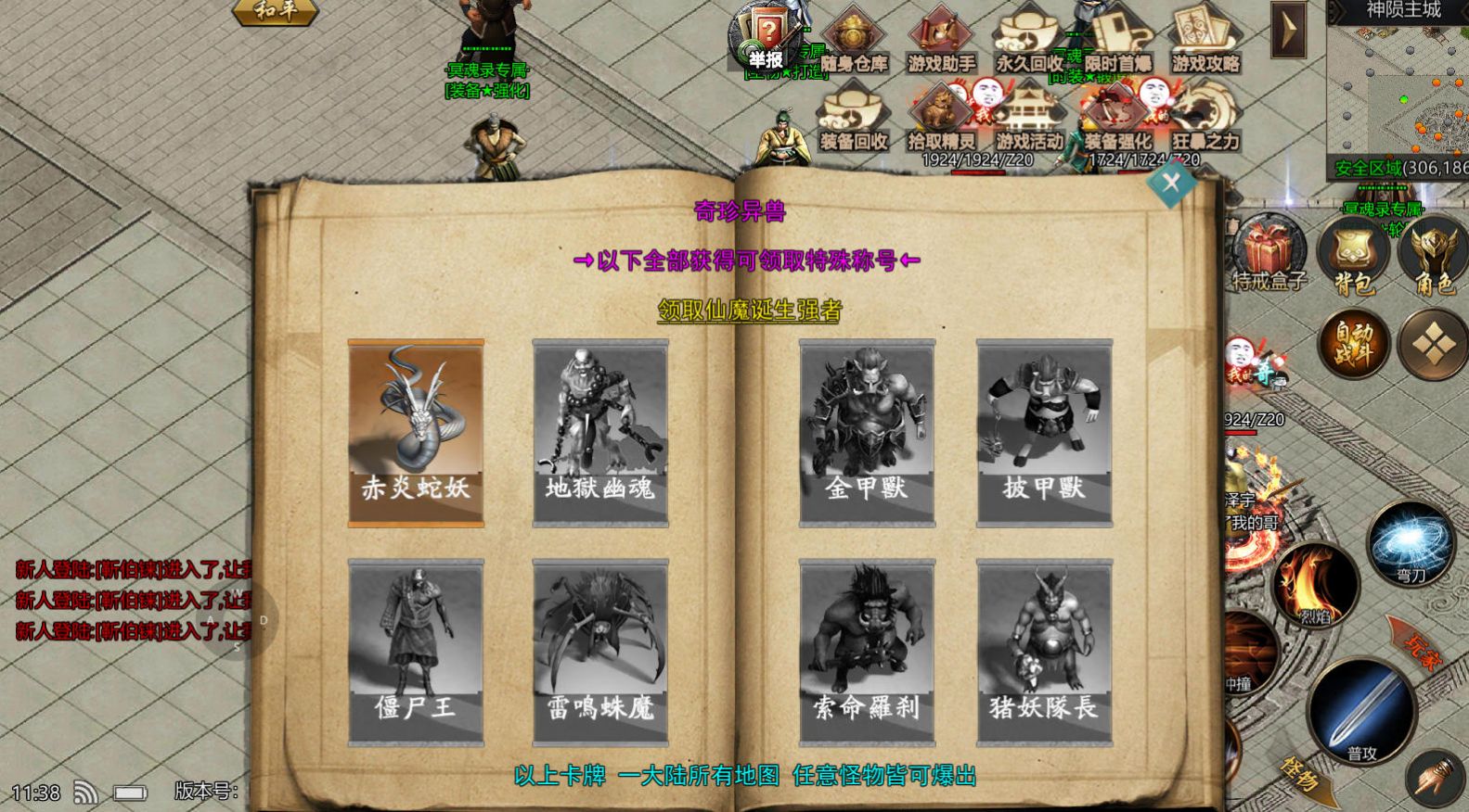 3、击败强大的Boss,争夺珍稀装备,还可以选择加入各种不同的公会,去完成更多任务解锁宝贝。