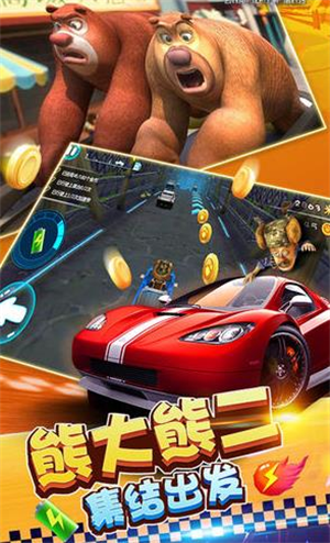 这是一个动漫挑战类型的跑酷游戏,想必大部分的人都看过《熊出没》这部动画片,而这个就是由这部动漫改偏而来的游戏;