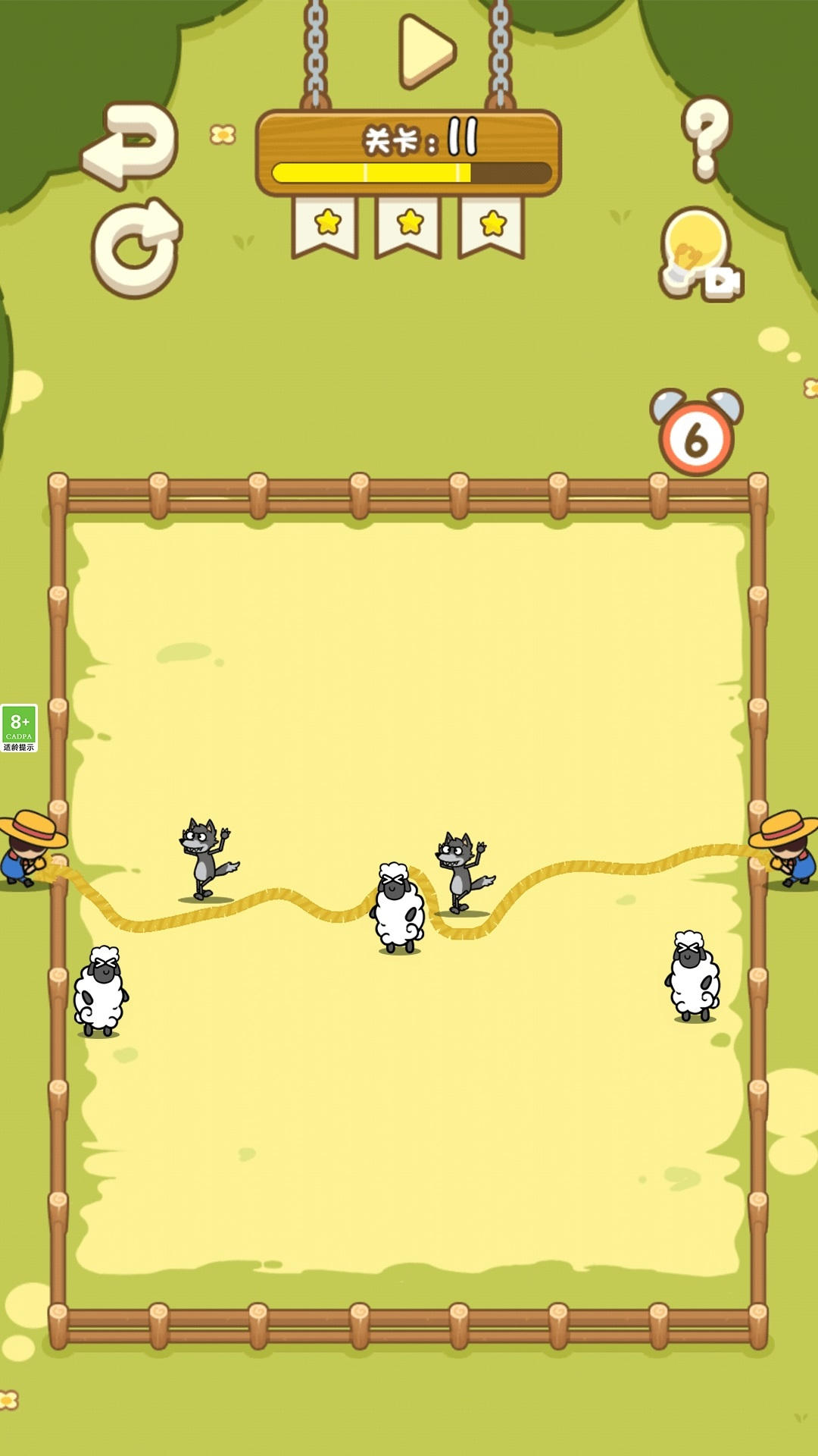 2、玩家需要通过画线的方式帮助小羊躲避狼并获得更高的分数。