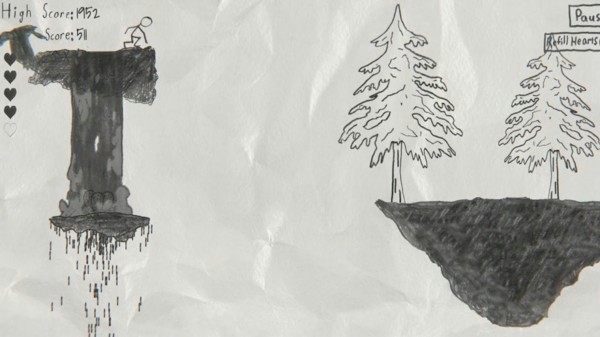 游戏画风非常的特别,在一个黑白手绘场景中跑酷,每一关都是新的场景。