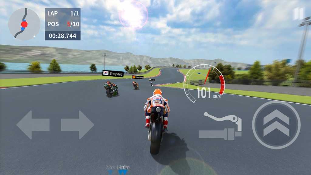 2、流畅的摩托车赛车控制,玩家可以根据自己的操作技巧来驾驭摩托车,体验操控的乐趣。