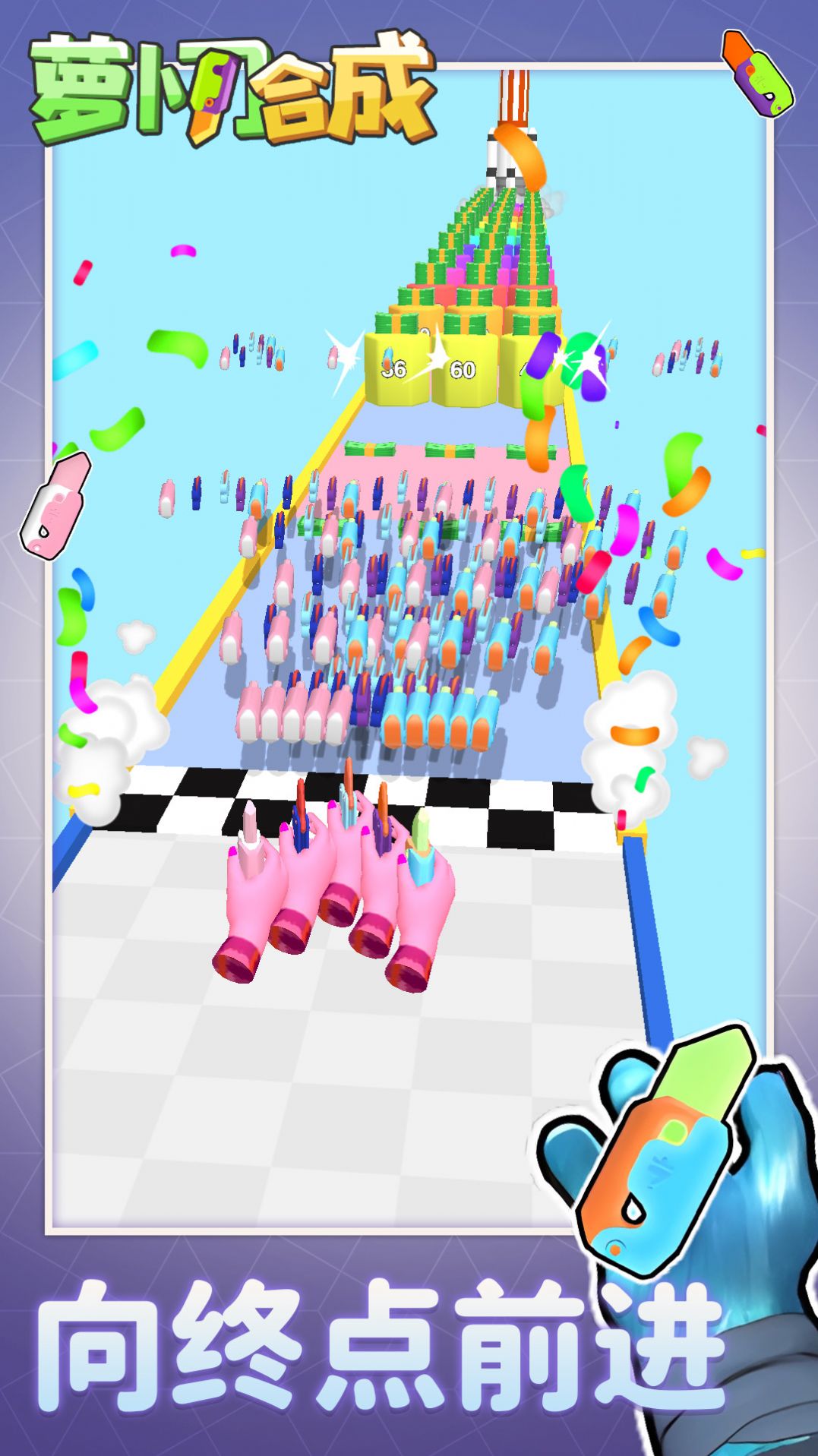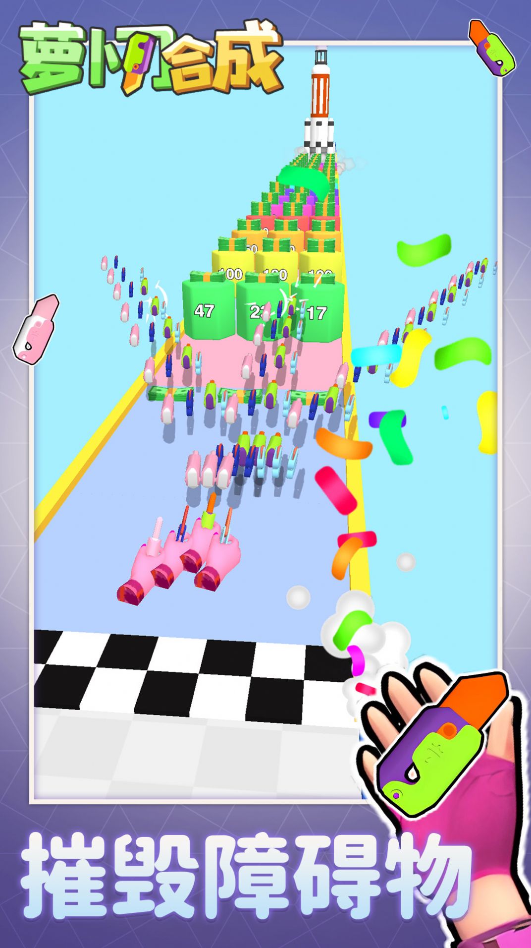 萝卜刀合成是一款很解压的跑酷游戏,游戏内的跑酷玩法很多,玩家可以体验到许多精彩的内容,操作都是很简单的,每个阶段的玩家都是可以快速上手的,控制萝卜刀不断地前进,可以收集不同的道具,都是有着不一样的功能的,可以帮助玩家更快的完成任务。
