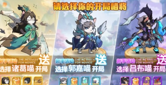 1、在游戏中扮演各个三国名将的小猫咪形象,与其他玩家进行卡牌战斗;